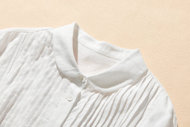 グランマママドーター ピンタックリネンブラウス シャツ 丸襟 麻100% 白系 グランマママドーター ピンタックリネンブラウス シャツ 丸襟 麻