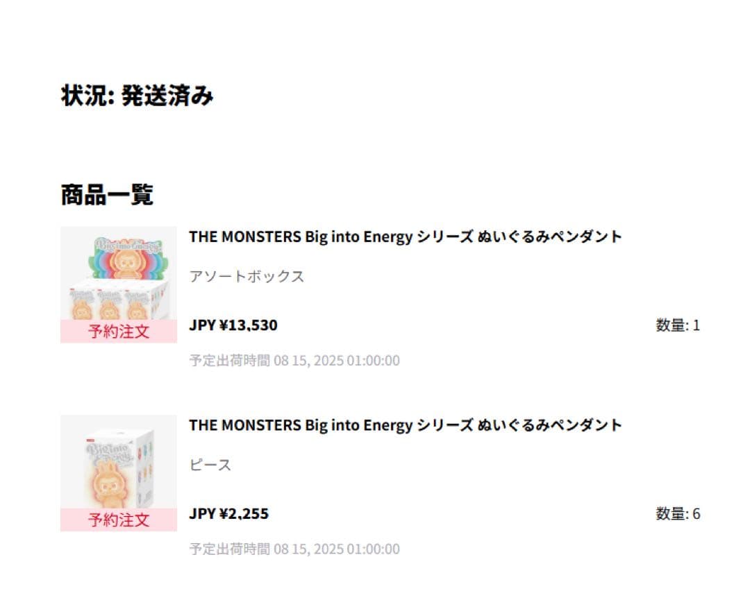 2025.10.20 1:49頃のお届け予定です。